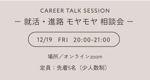 卒業生がリアルな体験談をシェア! 少人数だからこそ安心して話せる 就活・進路のお悩みシェア会です。