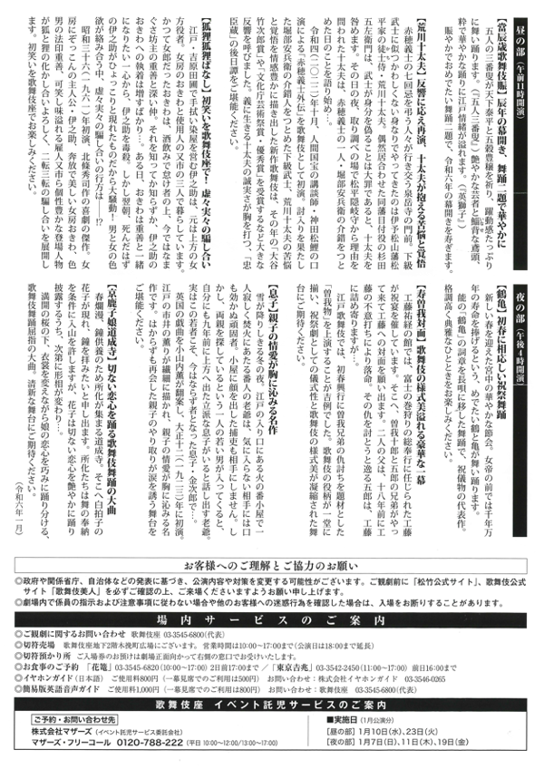 2024年1月7日[昼の部 11時開演]の演目がきまりましたのでチラシでお知らせいたします。